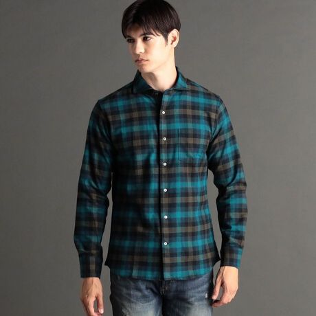 SIDOGRAS カラーチェック カッタウェイカラーシャツ