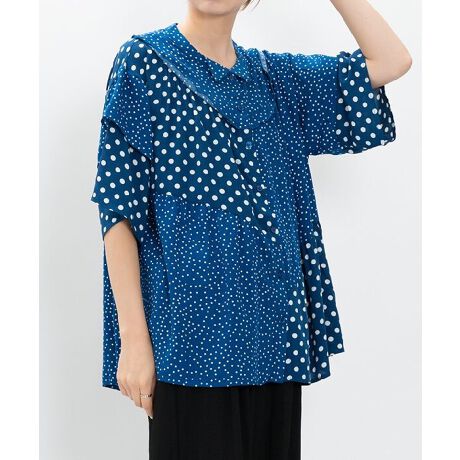 大小のドットを混ぜ合わせたプルオーバーです。