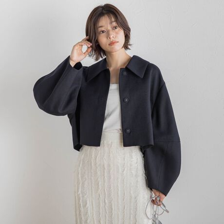 袖やボディーに切り替えやダーツを入れて丸みを出し、CLANEらしいシルエットに仕上げました。