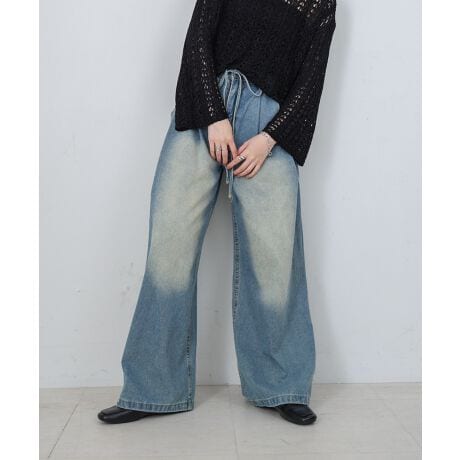 リボンがついたトレンドライクなデニムが登場!ローライズタイプのデニムになっています。シルエットはワイドストレートになっているので腰まわりはすっきり、裾に向かってストンと落ちるラインで、タックが強く入っているので縦のラインを強調され脚長効果や細見えが叶います!合わせるものによってカジュアルにも、きれいめにも使っていただける万能アイテムです。裾部分はボタンがついていて長さ調節が可能になっています!