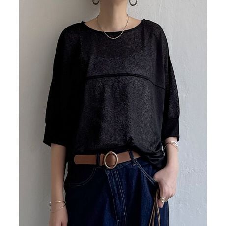 表情あるシアーカットソーなので、透け感もほどよくインナーとのレイヤードを楽しむことができます。