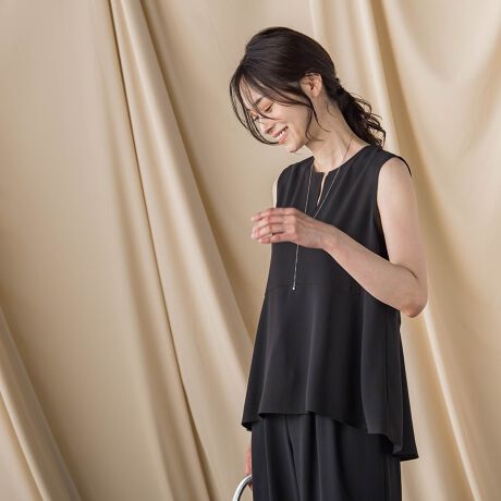 きれいめな落ち感と柔らかさが魅力の「kireri」素材を活かした、コンパクトなノースリーブブラウス。