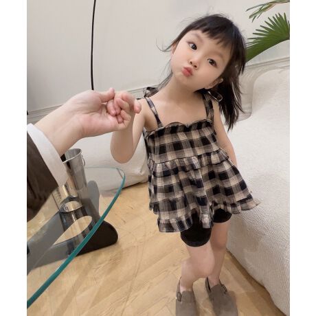 大きめチェック柄がかわいい2段フリルキャミソールワンピースです。