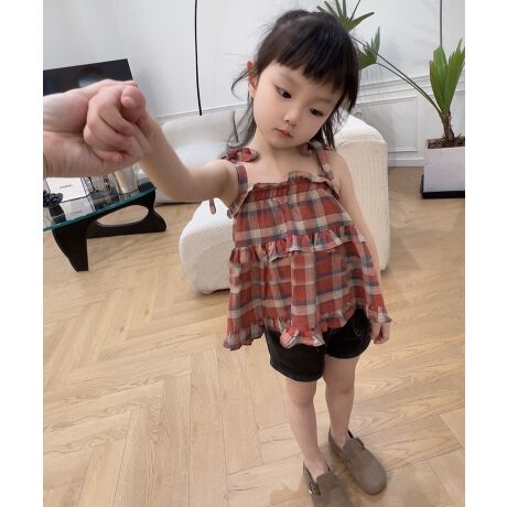 大きめチェック柄がかわいい2段フリルキャミソールワンピースです。