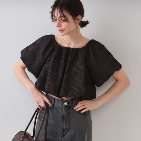 ・表面感のあるふくれジャカード素材で、華やかさとトレンド感のある素材を使用。