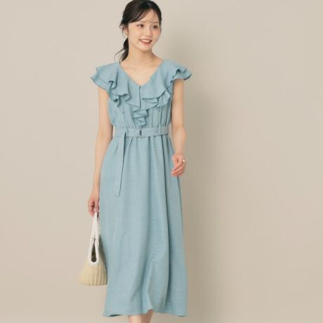 デニムライク麻調フリルワンピース