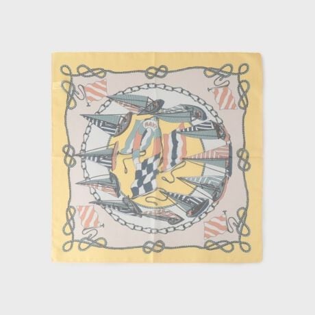 ヨット柄がプリントされた軽やかなシフォン素材の、イタリア製のスカーフ