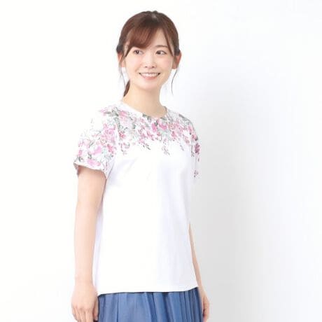【接触冷感コットン100%】ローズモア柄 ラインTシャツ