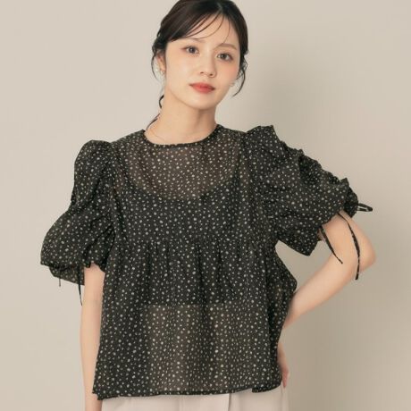 程よいハリ感とシア―感がある素材に小花柄プリントをした素材を使用。