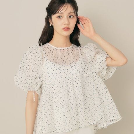 程よいハリ感とシア―感がある素材に小花柄プリントをした素材を使用。