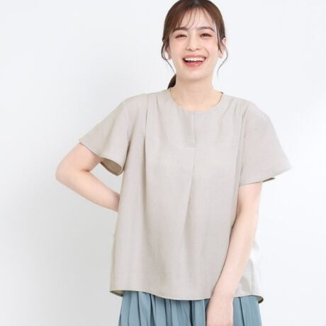 衿ぐりはホックで着脱できるスキッパーネックで、袖もひらっとした涼し気なデザインに仕上げました。