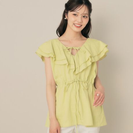 フリルデザインと腰回りをふんわりカバーしてくれるチュニック丈がポイント◎