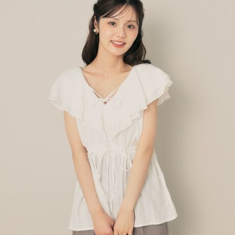 フリルデザインと腰回りをふんわりカバーしてくれるチュニック丈がポイント◎