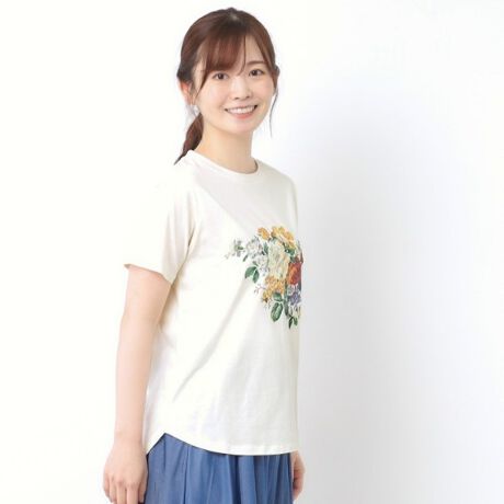 ローラ アシュレイの世界観を表現した大判の花柄プリントが特徴的なTシャツ。