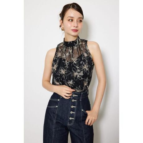 【オリジナルチュール刺繍のハイネックブラウス】■ポイントオリジナルチュール刺繍生地を使用したハイネックブラウスです。一枚で映える、華やかなトップスに仕上げました。■ディテール首元にギャザーを寄せていますが、生地が柔らかいので身体に馴染みすっきり着こなせます。■スタイリングデニムパンツと合わせて着用するとカジュアルな印象に。また、ジャケットのインナーに使うなど幅広いシーンで活躍できる優秀なブラウスです。■生地透け感:あり裏 地:あり伸縮性:なし光沢感:なし厚 さ:薄手■商品のお気に入り登録お気に入りアイテムの再入荷・在庫1点などの通知を受け取ることができます。[注意事項]※画像の商品はサンプルです。実際の商品と仕様、加工が若干異なる場合があります。※画像の商品は光の照射や角度、お使いのモニター環境により、実物と色味が異なる場合がございます。※着用、お取り扱いの際は、アテンションタグをご確認ください。