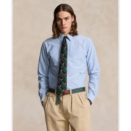 Ralph Laurenブランドの初期に登場して以来、 Poloルックの重要な柱としての地位を築いてきたオックスフォードシャツ。現在もラルフ・ローレンがこのアイコニックなシャツのデザインを継続。フロントにモノグラム刺繍を施したトリムバージョンも無数のバリエーションのひとつ・カスタムフィット:Poloのクラシックフィットとスリムフィットの間の細身のシルエット / ウエストに沿ったライン・ストレートカラー / ボタン付き前立て・長袖、ボタン付きバレルカフス・スプリットプリーツ入りのバックヨークで肩のなめらかな曲線を強調・フロントの左ウエストにPRLの刺繍・モデル身長185cm、着用サイズ15.5※商品の色味は、光のあたり具合など諸条件により色感が多少異なって見える場合がございますので予めご了承下さい。※ラルフ ローレンのシャツは、袖口がまくられた状態で納品され、そのままの状態で保管されている場合があります。デザインや商品特性を活かす為に、あえてこのような工夫をしておりますので、予めご了承ください。 【素材】・本体:綿 100% 装飾部分を除く【生産国】ベトナム