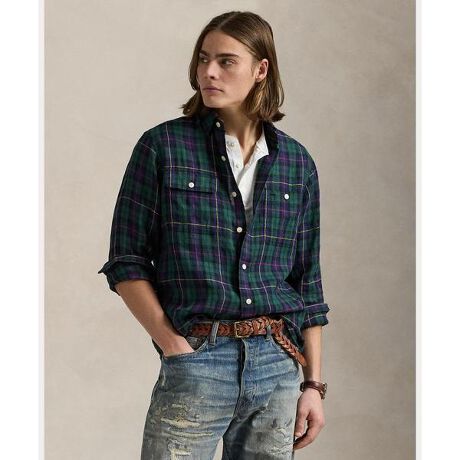 薄手で蒸れにくいリネンとクラシックなチェック柄がユーティリティ風シルエットに上質感を添えるシャツ・クラシックフィット:胸、ウエスト、袖にかけてゆったりとしたカット、低いアームホール・ストレートカラー / ボタン付き前立て・長袖、ボタン付きバレルカフス・胸にボタン付きポケット2つ・モデル身長185cm、着用サイズM※商品の色味は、光のあたり具合など諸条件により色感が多少異なって見える場合がございますので予めご了承下さい。※注意:柄の配置は、商品によって異なります。※ラルフ ローレンのシャツは、袖口がまくられた状態で納品され、そのままの状態で保管されている場合があります。デザインや商品特性を活かす為に、あえてこのような工夫をしておりますので、予めご了承ください。 【素材】・本体:麻 100%【生産国】ベトナム