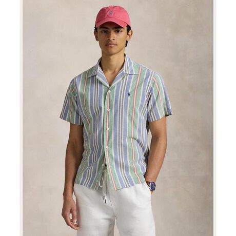 クラシック フィット ストライプド シャンブレー キャンプ シャツ
