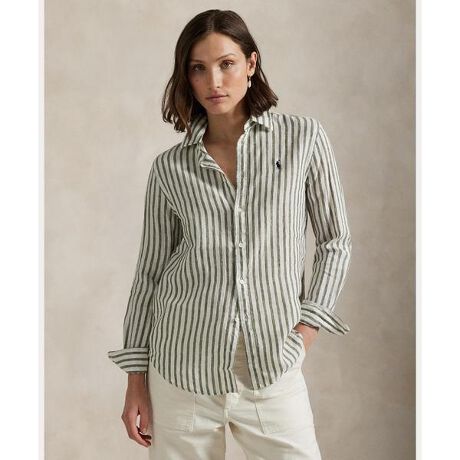 蒸れにくいリネンに糸染めによる縦方向のストライプを施した、クラシック フィット シャツの新バージョン。胸にシグネチャーのポニー刺繍のアクセント・クラシックフィット:ストレートなシルエット / 腰丈・スプレッドカラー / ボタン付き前立て・長袖、ボタン付きバレルカフス・左胸にシグネチャーのポニー刺繍・ラウンド型にカーブした裾 / ボックスプリーツのバックヨーク・モデル身長178cm、着用サイズS※商品の色味は、光のあたり具合など諸条件により色感が多少異なって見える場合がございますので予めご了承下さい。※注意:柄の配置は、商品によって異なります。※ラルフ ローレンのシャツは、袖口がまくられた状態で納品され、そのままの状態で保管されている場合があります。デザインや商品特性を活かす為に、あえてこのような工夫をしておりますので、予めご了承ください。 【素材】・本体:麻 100% 装飾部分を除く【生産国】フィリピン
