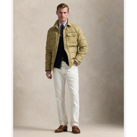 ワークシャツのシルエットに、薄手のダウンの中綿と典型的な暖かい季節の素材であるデラベリネンを組み合わせた、遊び心たっぷりの重ね着アイテム。・ストレートカラー / スナップ付き前立て / シグネチャーのスナップ / 長袖、前腕にステッチを施したパッチ付き / スナップ付きバレルカフス・胸にスナップ付きポケット2つ / フロントウエストにスナップ付きポケット2つ / 左胸の内側にポケット・総裏地、中綿入り・750フィルパワー / フィルパワーはダウンのかさ高を測定(フィルパワー範囲は450〜1,000)・左袖にシグネチャーのポニーをあしらったPolo Ralph Laurenのレザー製シールドパッチ・モデル身長185cm、着用サイズM※商品の色味は、光のあたり具合など諸条件により色感が多少異なって見える場合がございますので予めご了承下さい。 【素材】・本体:麻 100% パッチ部分:牛革 100% 裏地:ナイロン 100% 詰め物:ダウン 90%、フェザー 10%【生産国】ベトナム