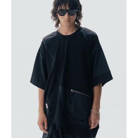 異素材切り替えとフロントポケットがアーバンな雰囲気を演出する一着。