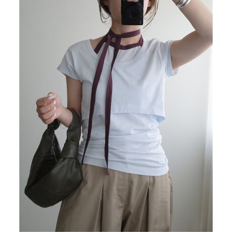 ホルターネックのキャミソールとクロップドTシャツがセットになったアイテム。