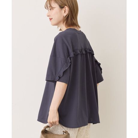 バックフリルがフェミニンなカットプルオーバー。ゆったりとした身幅とやや裾絞りのコクーンシルエットが抜け感たっぷりなデザインです。ラウンドしたヘムラインで重たくならず軽やかなスタイリングを演出。様々なボトムと着合わせしやすく幅広いコーディネートでお楽しみいただけます。透け感[ややあり]