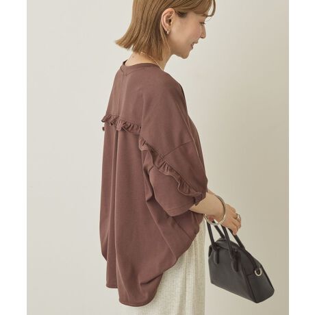バックフリルがフェミニンなカットプルオーバー。ゆったりとした身幅とやや裾絞りのコクーンシルエットが抜け感たっぷりなデザインです。ラウンドしたヘムラインで重たくならず軽やかなスタイリングを演出。様々なボトムと着合わせしやすく幅広いコーディネートでお楽しみいただけます。透け感[ややあり]