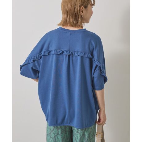 バックフリルがフェミニンなカットプルオーバー。ゆったりとした身幅とやや裾絞りのコクーンシルエットが抜け感たっぷりなデザインです。ラウンドしたヘムラインで重たくならず軽やかなスタイリングを演出。様々なボトムと着合わせしやすく幅広いコーディネートでお楽しみいただけます。透け感[ややあり]