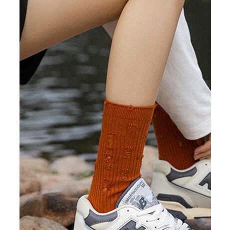 【mosox】 カラー展開豊富なダメージ加工デザインのレディースソックスです。履くだけでオシャレで元気な印象に!綿80%、ポリエステル4%、ポリウレタン6%で作られており、肌に優しく、快適で通気性があり、伸縮性と耐引裂性に優れていて変形しにくいです。また臭いがつきにくく、コストパフォーマンスに優れています。 日常生活で着用できるファッショナブルなアイテムです。