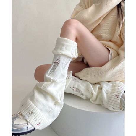 トレンド感溢れるダメージデザインのレッグウォーマー。ルーズなシルエットと、足元に向かって広がるデザインが美脚に魅せてくれます☆オールシーズン着用可能で、脚を出したくない寒い季節にもぴったり!スニーカーやローファー、厚底シューズに合わせるとトレンド感のあるスタイルに。Y2Kファッションが好きな方にぴったりのアイテムで、コーディネイトのワンポイントにおすすめです♪