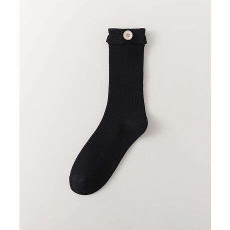 シンプルなリブ編みソックスに、ボタンをあしらった可愛らしいデザイン。折り返しデザインで、コーディネートに合わせてアレンジが楽しめます。