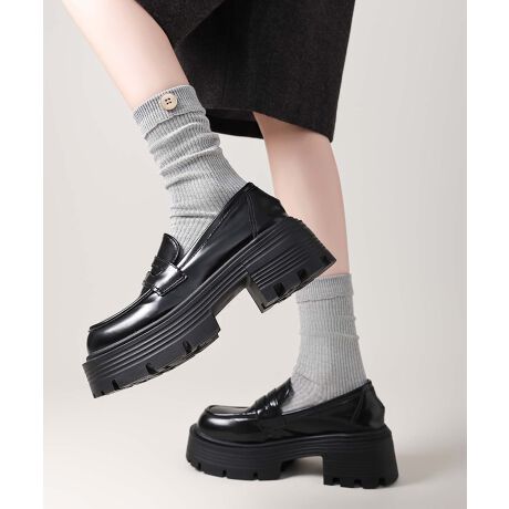 シンプルなリブ編みソックスに、ボタンをあしらった可愛らしいデザイン。折り返しデザインで、コーディネートに合わせてアレンジが楽しめます。