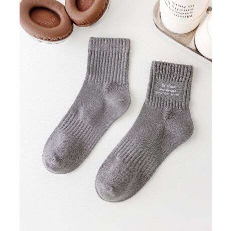 シンプルながらも英字メッセージがアクセントになっているソックス。綿の含有率が高い素材を使用しており、吸収性&耐久性があります。ベーシックなデザインで、男女問わず使えるフリーサイズ。カラーバリエーションが豊富なため、好きなカラーを選べるのも嬉しいポイントです♪オールシーズン使用可能で、デイリーユースに最適です◎