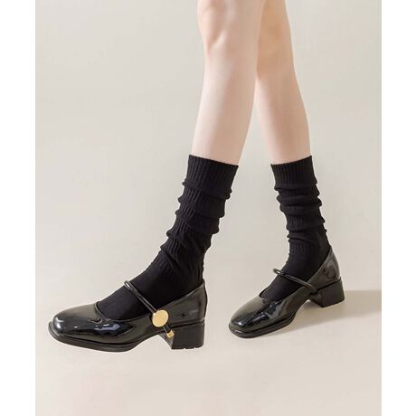 無地のシンプルなハイソックス。トレンドのルーズソックスとしても着用できます。スニーカーやパンプスなどどんなコーデにも合わせやすいシンプルデザイン♪