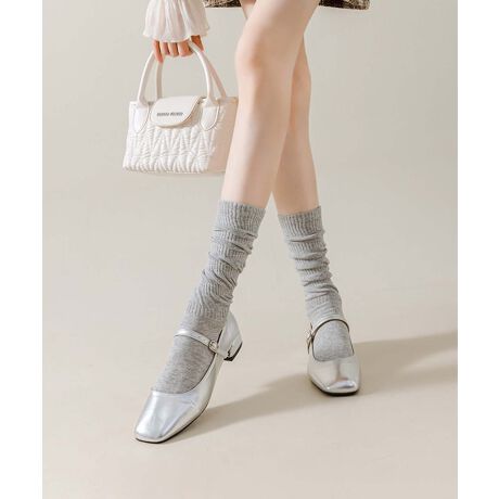 無地のシンプルなハイソックス。トレンドのルーズソックスとしても着用できます。スニーカーやパンプスなどどんなコーデにも合わせやすいシンプルデザイン♪