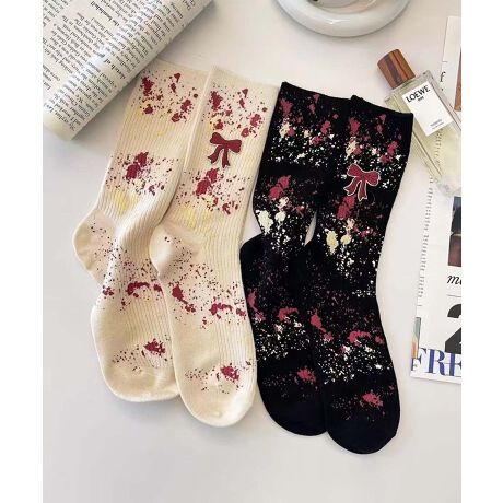 【MOSOX】リボン×ペイントスプラッシュリブクルーソックス