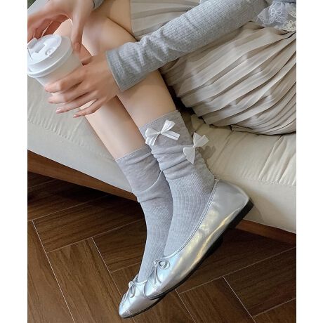 ■デザイン *リボンの装飾要素を取り入れて、シンプルでありながらも工夫を怠りません。黒、白、米、グレーなどのベースカラーはフィット度が高く、リボンが立体的でふっくらとしているので、ソックスに甘さや遊び心を加え、着こなしのディテールを明るくしてくれます。