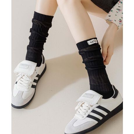 柔らかいコットンシアーの2Wayソックス。ハイソックスとミドルソックス、コーデに合わせて組み合わせ自由◎スニーカーはもちろん、ローファーとの相性抜群でどんなコーデにも取り入れられます。