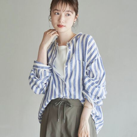 ご好評につき再入荷!軽やかに大人の抜け感を演出する、涼感バンドカラーシャツ