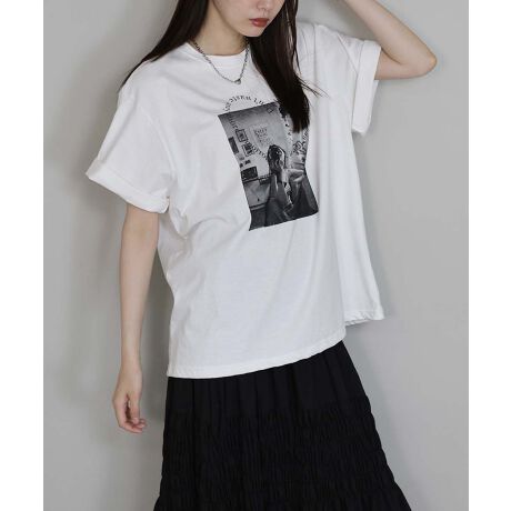 フォトプリントをモノトーンに落とし込むことで主張しすぎずデイリーに着用しやすいデザインに仕上がりました。