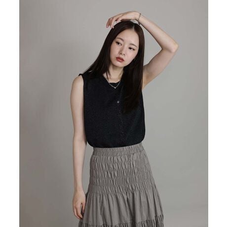 ボタンがポイントになるベーシックなラメニットベスト
