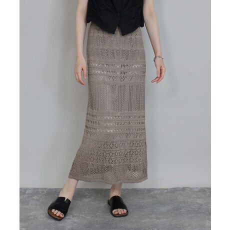 繊細なクロシェ編みが1枚でサマになる着映えニットスカート。