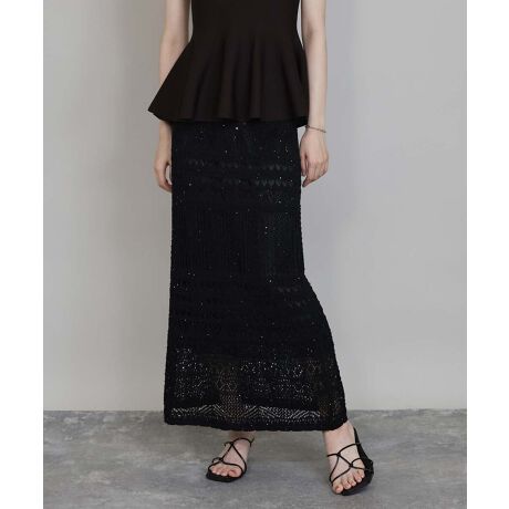 スパンコールがさりげなく煌めく上品なクロシェレーススカート
