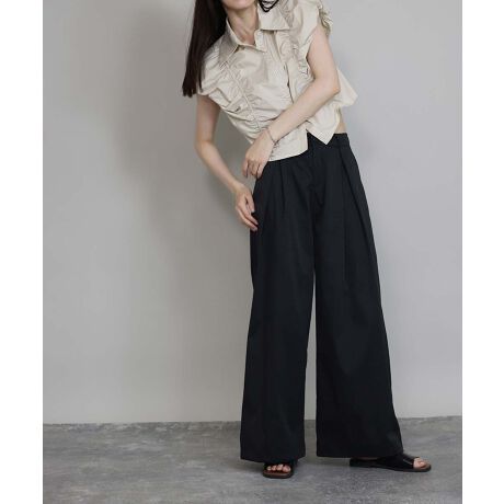 デイリーに活躍し、ナチュラルな柔らかい素材感で程よい抜け感と上品さを兼ね備えたタックパンツ。