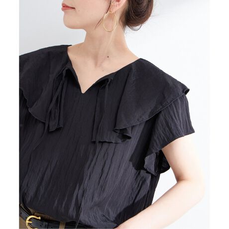 ラッフルカラーのフェミニンな甘めデザインで、大人可愛いカジュアルなスタイルに取り入れやすいのが嬉しいブラウスです。