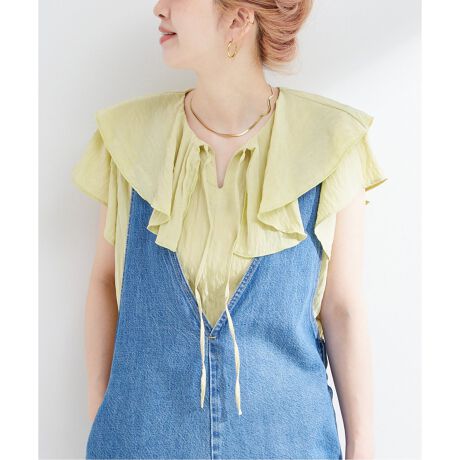 ラッフルカラーのフェミニンな甘めデザインで、大人可愛いカジュアルなスタイルに取り入れやすいのが嬉しいブラウスです。
