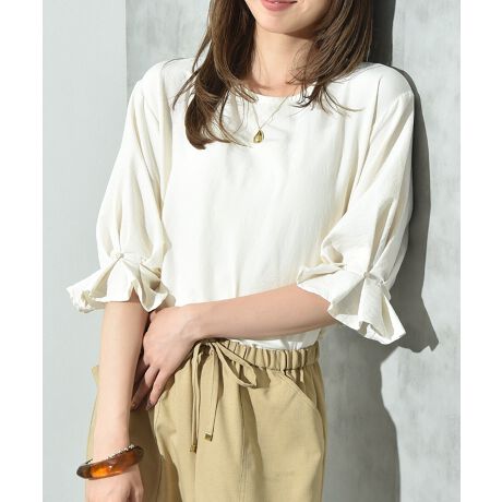パウダーデシン袖タックギャザースリーブプルオーバー