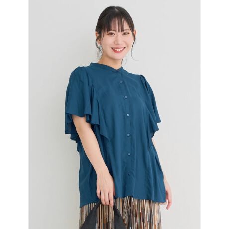 柔らかな揺れ感のあるフレアスリーブがフェミニンなムードを漂わせるブラウス