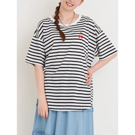 チェリー刺繍Tシャツ(無地・ボーダー柄)